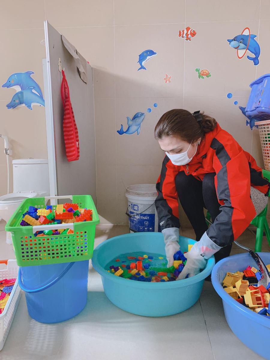 Các cô đã rửa đồ chơi bằng dung dịch Cloramin B