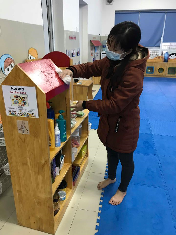 Việc thường xuyên lau dọn, vệ sinh lớp học và môi trường xung quanh nhà trường không những giúp cho trẻ có môi trường hoạt động đảm bảo vệ sinh, giúp trẻ được phát triển toàn diện mà còn giúp cho các cô có thói quen tốt trong cuộc sống.