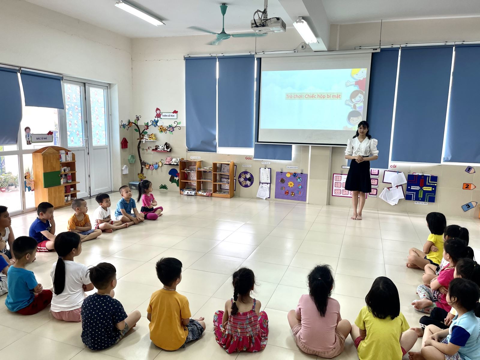 Cô và trẻ cùng nhau hát bài hát: Giọt mưa và em bé