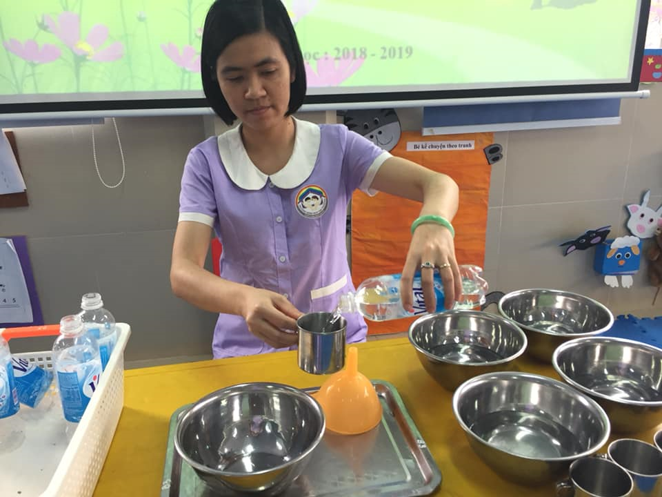 Cùng nhau đong nước xong chúng mình cùng nhau ôn luyện củng cố thông qua các trò chơi. Trò chơi có tên là " Thử tài khéo léo.