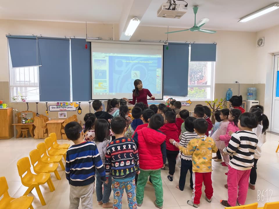 Cô và trẻ cùng hát bài " Em đi chơi thuyền"