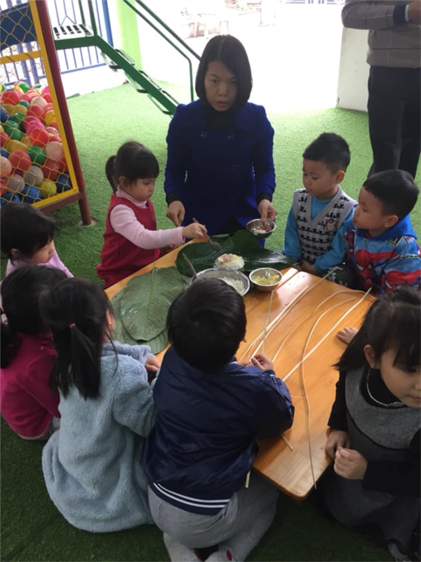 Kết thúc buổi gói bánh chưng đầy ý nghĩa, chúng tớ được tận tay gói bánh và còn được ăn bánh chưng khi các bác nhà bếp đã luộc chín. Năm mới đến rồi cô chúc cho các con sang năm mới sức khỏe, ngoan, học giỏi và nghe lời thầy cô, ông, bà, bố, mẹ nhé !