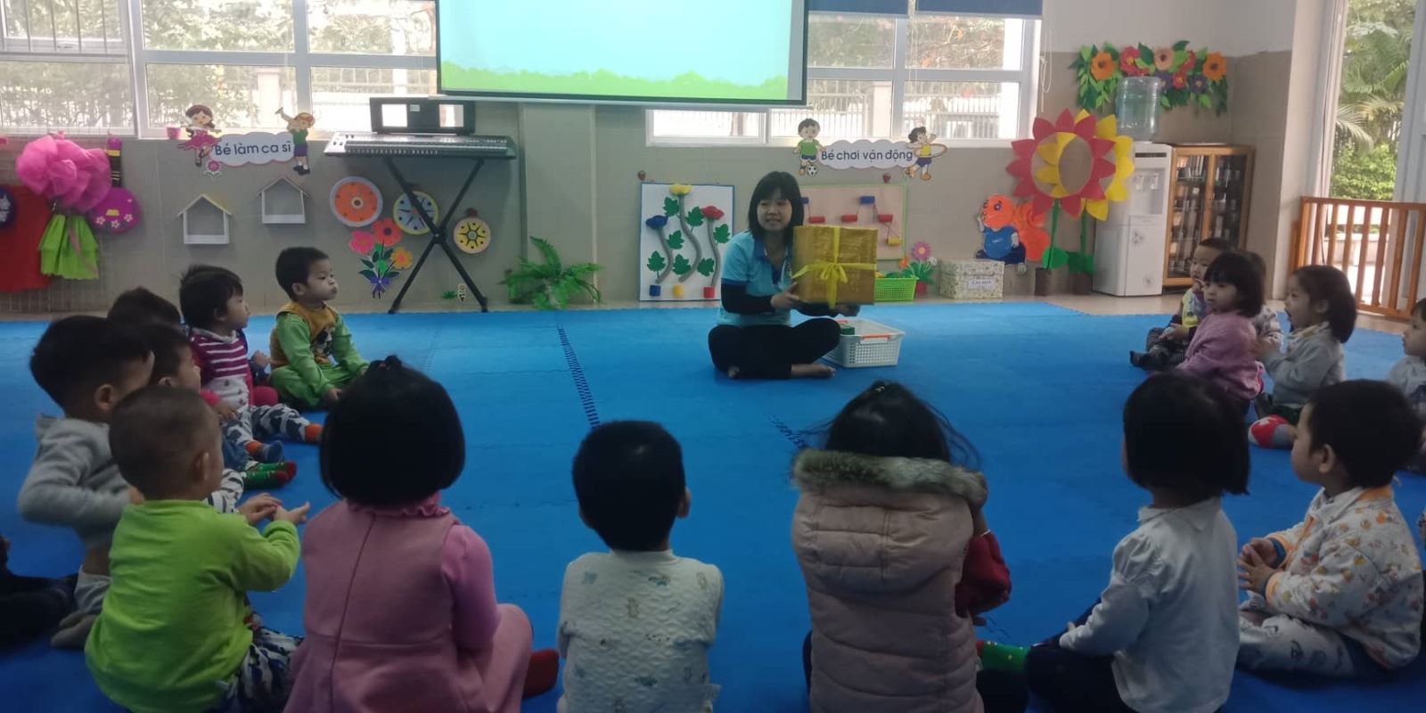 Nhận thấy vai trò quan trọng trong việc cung cấp kiến thức về phân biệt đồ vật, đồ chơi có hình vuông nên các cô lớp nhà trẻ D1 tổ chức giờ học nhận biết phân biệt đồ dùng đồ chơi hình vuông cho trẻ. Trước khi vào bài học cô và trẻ cùng hát bài hát : Nhà của tôi ". Dưới đây là một số hình ảnh trẻ tham gia hoạt động.