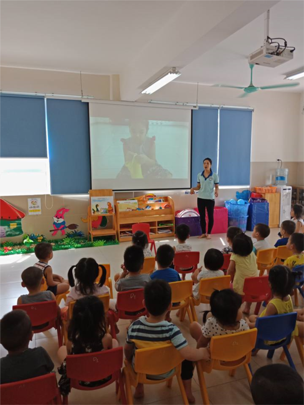 Thông qua bài học, trẻ biết được khi lớn tuổi hơn sẽ được lên lớp. Đến lớp với các cô trẻ sẽ được làm gì. Mặt khác, cô cho trẻ xem video các hoạt động của các anh chị mẫu giáo bé. Trẻ rất thích thú và chăm chú quan sát các hoạt động.