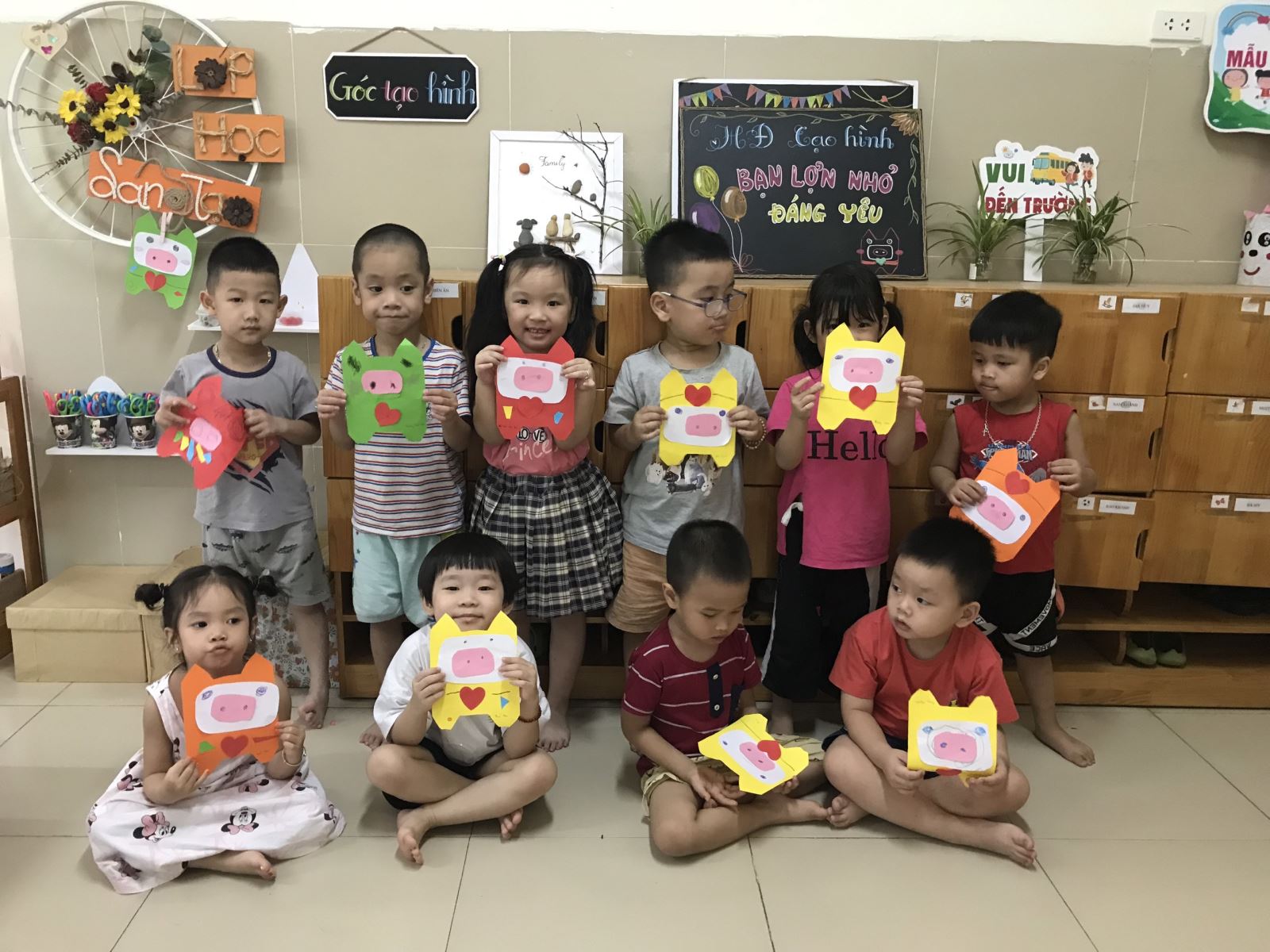 Mời các bạn đến với một số hình ảnh của giờ hoạt động tạo hình thủ công "Lợn nhỏ đáng yêu" của các bé lớp MGN - B4