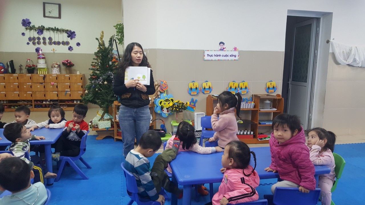 Cô giáo hướng dẫn các bạn nhỏ tận tình từng nét vẽ