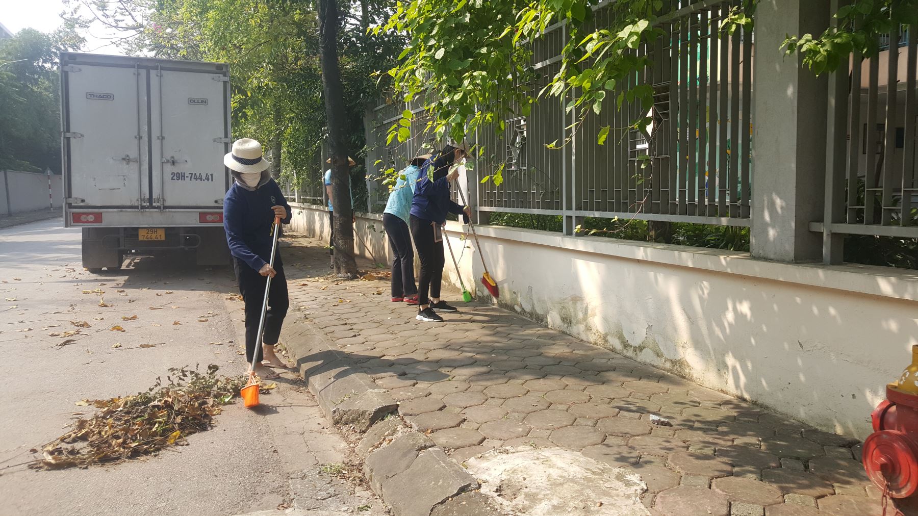 Các cô giáo quét dọn toàn bộ trong và ngoài trường