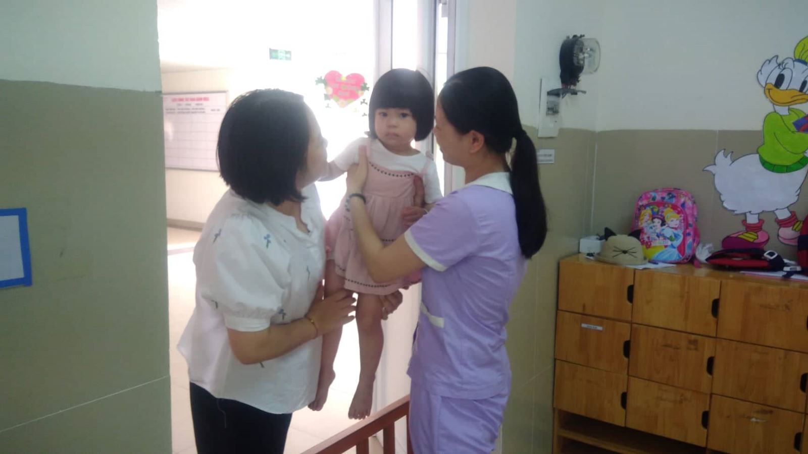 Bé được cô đón vào lớp