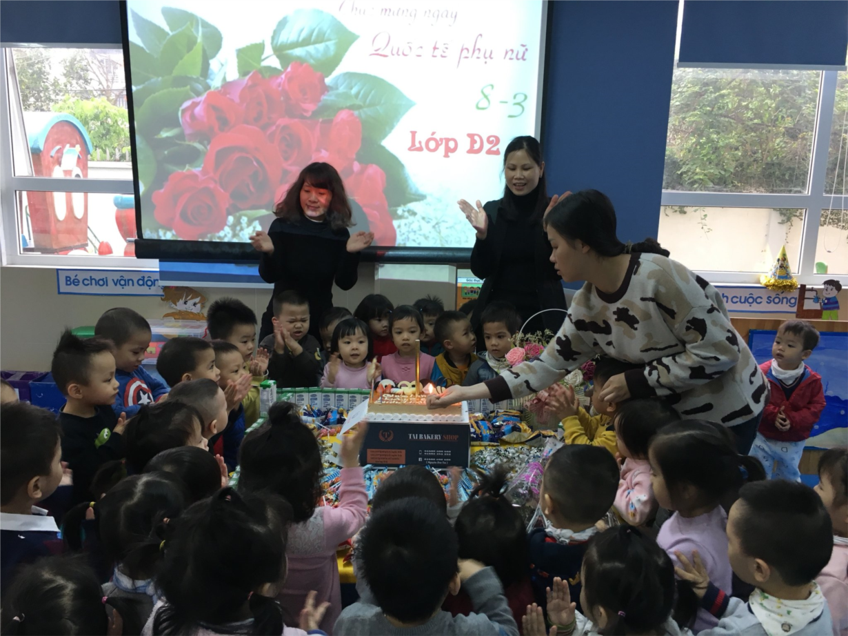 Nhân dịp này, Ban Giám Hiệu, các bậc phụ huynh và các cô giáo cũng dành sự quan tâm đặc biệt tới các bạn nhỏ trường Mầm non Gia Thượng trong đó có các bạn nhỏ lớp nhà trẻ D2. Các bạn tuy còn nhỏ nhưng rất hào hứng và thích thú khi tham gia các hoạt động chào mừng ngày quốc tế phụ nữ 8/3.
