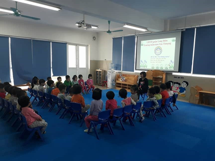 Cô đàm thoại với trẻ kết hợp với hình ảnh để trẻ hiểu nội dung bài thơ