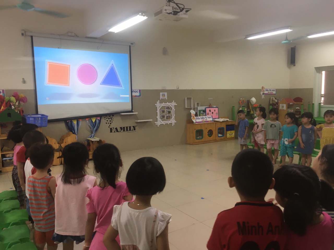 Cô giới thiệu hình tam giác và đặc điểm của hình cho trẻ nghe