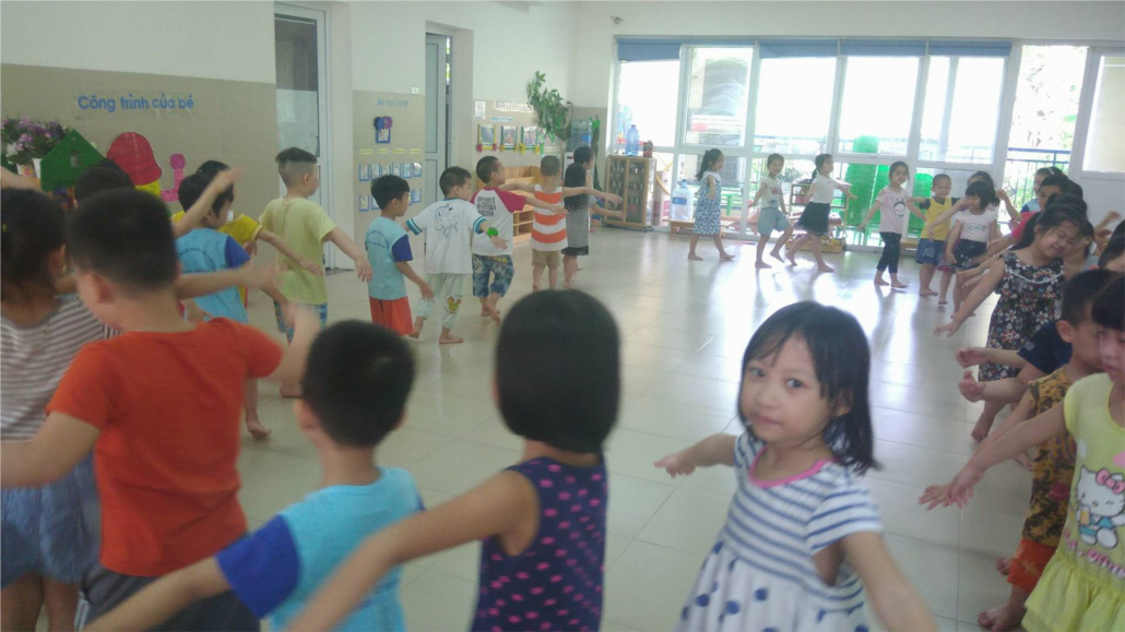 Khi được vận động phù hợp, trẻ sẽ luôn cảm thấy sảng khoái, ăn ngon miệng hơn nhờ thế hỗ trợ bé tăng cân đều đặn, phát triển chiều cao, giúp bé nuôi dưỡng một trái tim khỏe mạnh, giảm nguy cơ mắc các bệnh … Ngoài những lợi ích dễ nhận thấy về mặt sức khỏe , chơi thể thao còn mang lại những lợi ích lâu dài cho trẻ sau này. Khi trẻ chơi thể thao, trẻ có cơ hội thể hiện thế mạnh của mình, học cách hòa nhập với một tập thể là đội nhóm, học cách chia sẻ , phối hợp với các đồng đội của mình… để qua đó tự tin hơn về vai trò của mình trong một tập thể, trong cộng đồng và với các bạn trong lớp của mình. Bây giờ xin mời quý phụ huynh đến với tiết học: PTVĐ: Đi trên ghế thể dục.TC: Chuyền bóng của lớp MGL A1.