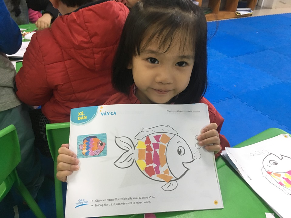 rẻ xé và dán vảy cá theo ý tưởng riêng