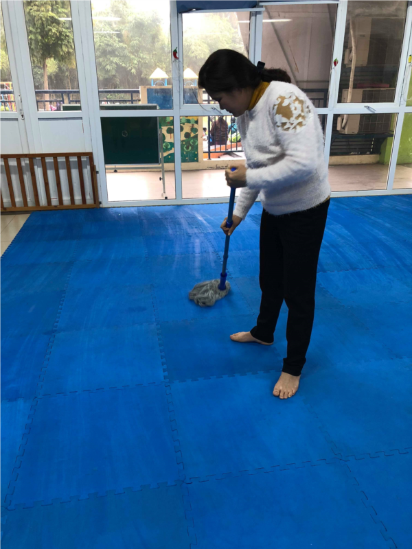Giáo viên lau giá đồ chơi