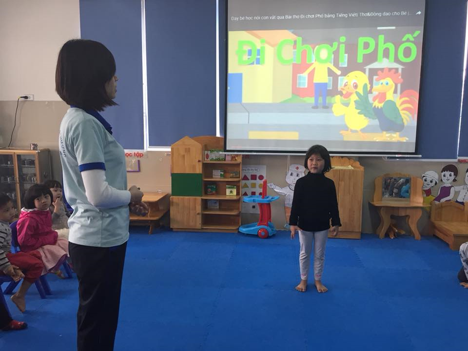 Mở đầu cô và trẻ cùng nhau hát bài " Đi đường em nhớ ". Cô dạy trẻ đọc thơ thông qua hình ảnh minh họa phong phú và đặc sắc.
