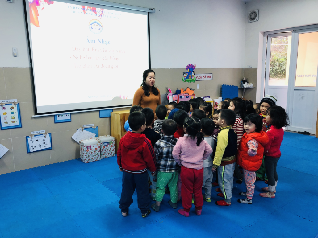 Thực tế cho thấy, trẻ em ở tuổi mầm non rất nhạy cảm với âm nhạc. Trẻ thích nghe nhạc và hứng thú tham gia vào các hoạt động âm nhạc. Mục đích của giáo dục âm nhạc là giáo dục tình cảm đạo đức, thẩm mỹ cho trẻ. Giáo dục âm nhạc hình thành cho trẻ lòng yêu thiên nhiên, Tổ quốc, tình yêu thương con người; hình thành và phát triển ở trẻ những thói quen tốt trong sinh hoạt tập thể như: Tính tổ chức kỷ luật, tự chủ, mạnh dạn trước mọi người. Giáo dục âm nhạc còn là phương tiện nâng cao khả năng trí tuệ, phát triển thể chất, giúp trẻ phát triển trí tưởng tượng, củng cố kiến thức trẻ qua học tập, vui chơi. Quá trình trẻ tiếp xúc và hoạt động âm nhạc như học hát, nghe hát, vận động theo nhạc, chơi trò chơi âm nhạc... sẽ hình thành ở trẻ những yếu tố của một nhân cách phát triển toàn diện, hài hòa, là sự phát triển về thẩm mỹ, đạo đức, trí tuệ và thể lực. Giáo dục âm nhạc cho trẻ mầm non là một nhiệm vụ vô cùng quan trọng. Chính vì thế trong các giờ học hằng ngày của các con không thể thiếu tiết âm nhạc. Hôm nay, thứ 2 ngày 31 tháng 12 năm 2018 các bạn lớp MGB C1 được học hát bài:" Em yêu cây xanh", được nghe hát được chơi trò chơi nữa đấy.