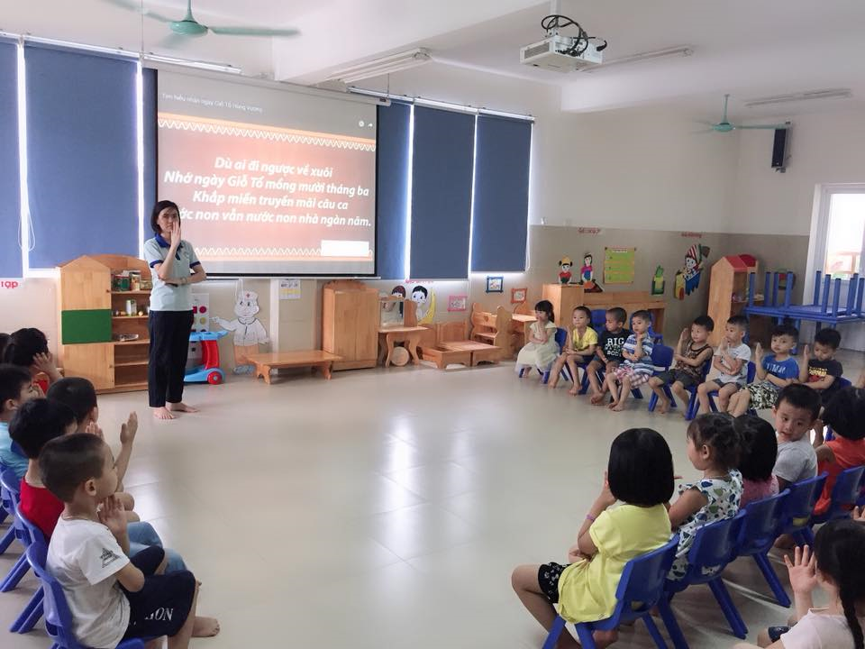 Cô cho trẻ xem video về nguồn gốc sự ra đời của ngày giỗ tổ Hùng Vương