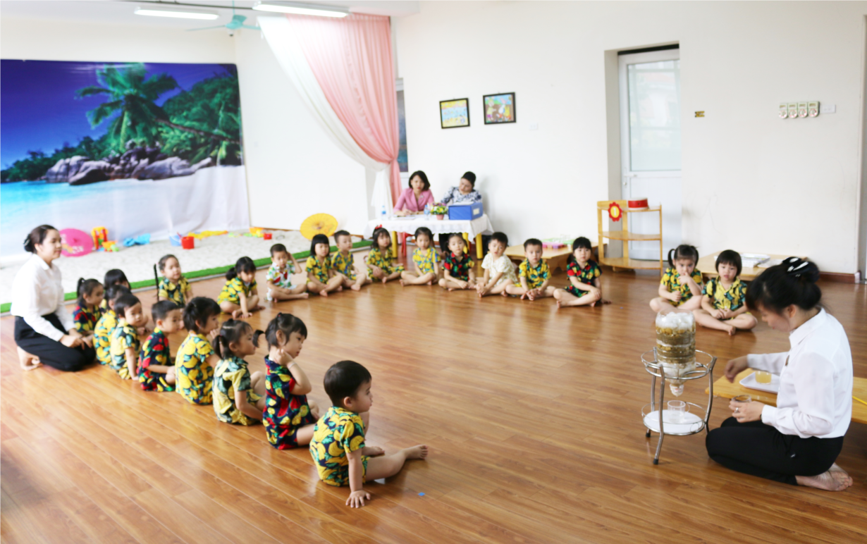 Trong tiết KPXH “ Sự kì diệu của cát ” cô giáo Phùng Thị Tuyết đã khéo léo dẫn dắt, tạo môi trường học lấy trẻ làm trung tâm như một bãi biển thu nhỏ giúp cho trẻ trải nghiệm thực tế hình thành kiến thức, kỹ năng.