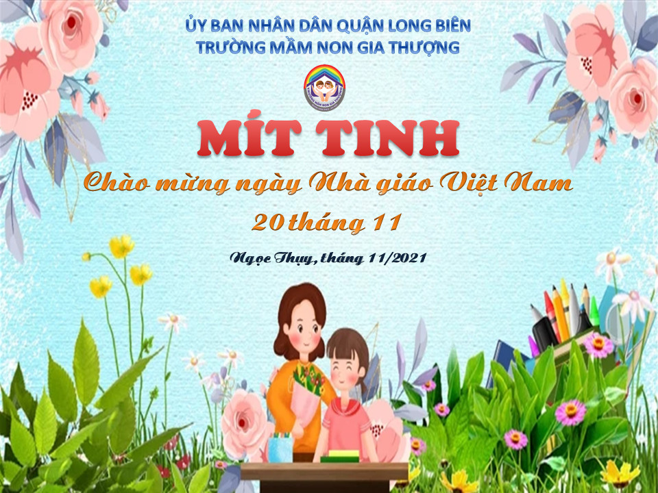 Hoà chung với khí thế tưng bừng, phấn khởi của ngành giáo dục cả nước kỉ niệm 39 năm ngày nhà giáo Việt Nam (20/11/1982 - 20/11/2021). Thực hiện kế hoạch năm học và được sự đồng ý của Đảng ủy phường Ngọc Thụy, PGD quận Long Biên. Ngày 19/11/2021 vừa qua, Trường mầm non Gia Thượng long trọng tổ chức “Chương trình Mít tinh chào mừng ngày nhà giáo Việt Nam 20-11” dưới hình thức Online.