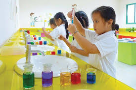 Cho trẻ thả một số vật: cao su, nhựa, sỏi, gỗ, sắt… và quan sát xem nó nổi hoặc chìm ở lớp chất lỏng nào và tự rút ra kết luận