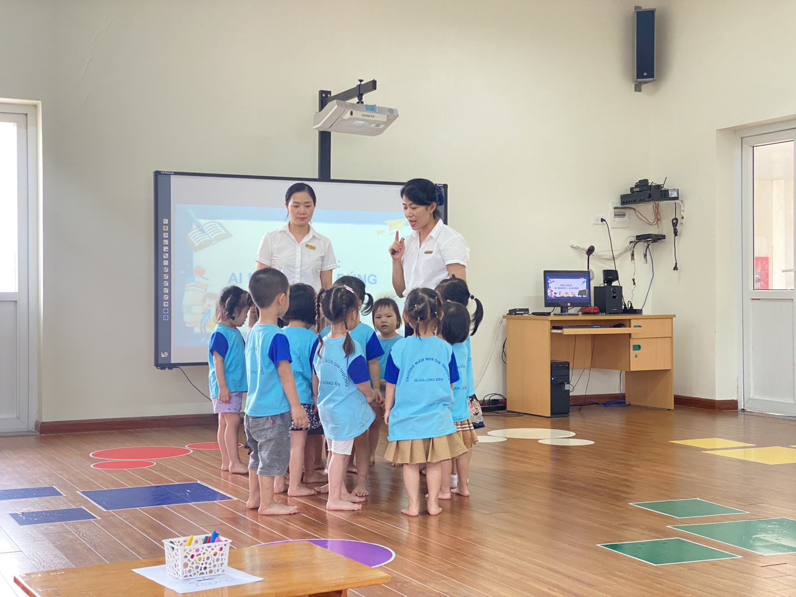 Cô Hoà tham gia vào hoạt động chăm sóc giáo dục trẻ.