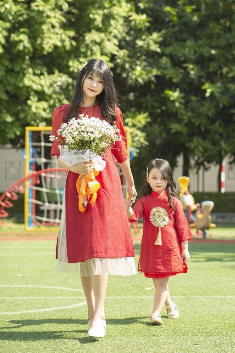 Cô Hoàng Phương Anh chụp ảnh cùng học sinh trong cuộc thi ảnh của trường MN Gia Thượng tổ chức