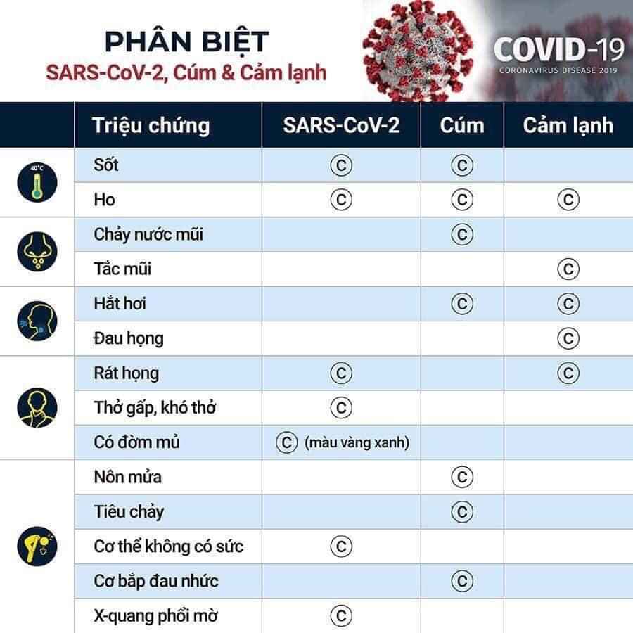 Tổ chức Y tế thế giới (WHO) chỉ ra rằng, mặc dù có nhiều triệu chứng giống nhau nhưng thực tế người nhiễm virus COVID-19, cảm lạnh, cảm cúm lại do các virus khác nhau gây ra.