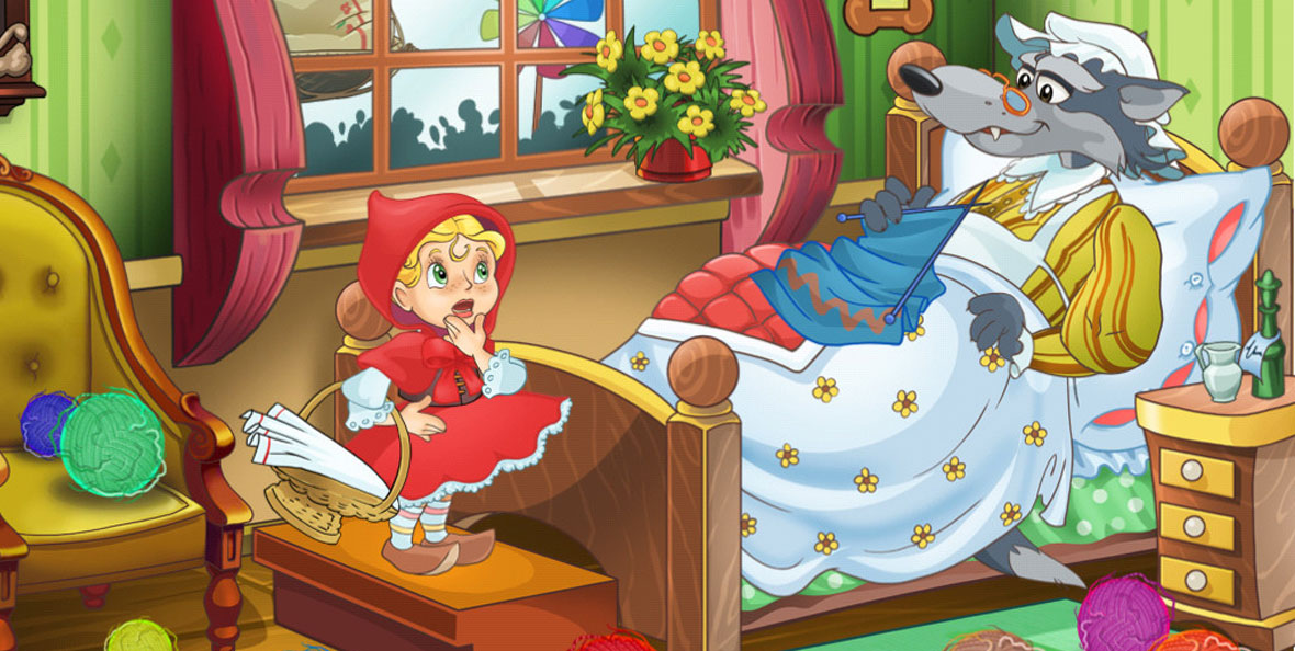 – Bà cháu ở đâu, cháu Khăn đỏ?