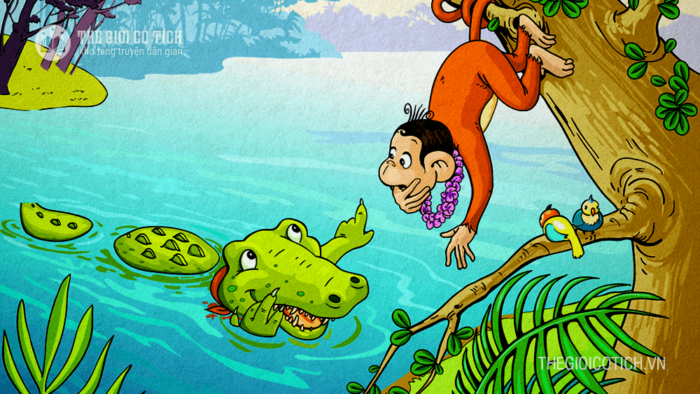 Cá !important; sấu đã mời khỉ ngồi trên lưng mình để đưa đi tham quan dòng sông nhưng thật ra nó có ý định giết khỉ và lấy quả tim khi bơi đến giữa dòng. Khi khỉ biết được mưu đồ xấu xa của cá sấu, nó đã nhanh trí nói với cá sấu rằng mình để quả tim ở trên cây. Nếu muốn lấy thì hãy chở nó quay lại. Cá sấu tin lời, chở khỉ quay trở lại để lấy quả tim. Thế nhưng, khi đến nơi, khỉ đã thoăn thoắt trèo lên cây và chẳng mấy chốc biến mất. Và thế là, kế hoạch của cá sấu đã hoàn toàn thất bại.