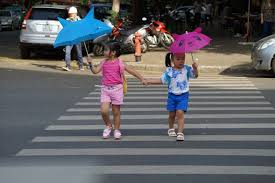 – Các cháu khi qua đường phải có người lớn dắt, không thì dễ xảy ra tai nạn.