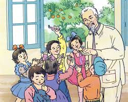– Thưa Bác, những bạn nào ngoan thỡ mới được kẹo Bác cho ạ!
