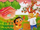 Ông trồng cây táo xuống đất. Bé tưới nước cho cây. Mưa tưới nước cho cây. Mặt trời sưởi ấm cho cây