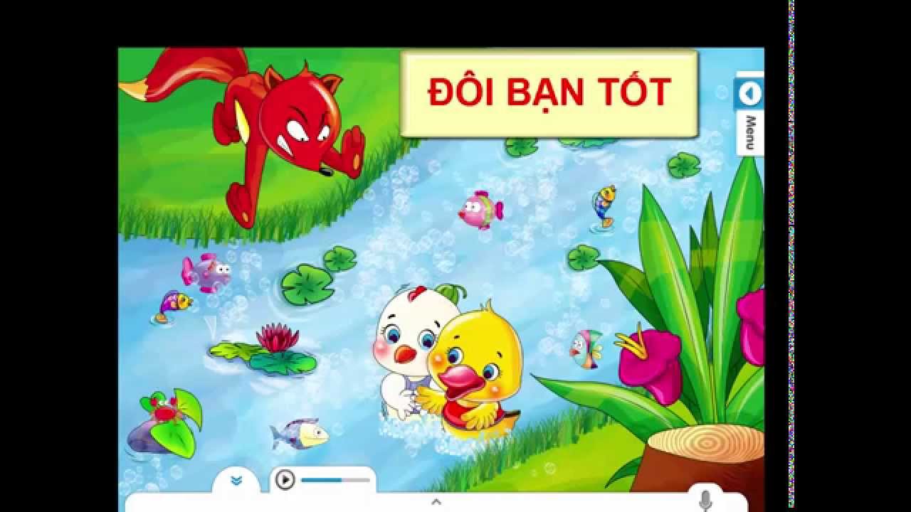 Vịt con thấy Gà con cỏo với mỡnh cũng buồn, liền bỏ ra ao tỡm tộp ăn. Một con Cáo mắt xanh, đuôi dài nấp trong bụi rậm, thấy Gà con đi tỡm mồi một mỡnh định nhảy ra vồ. Gà con sợ quá vội ba chân bốn cẳng chạy ra bờ ao. Gà con vừa chạy vừa kêu : “Chiếp, chiếp, chiếp !”.