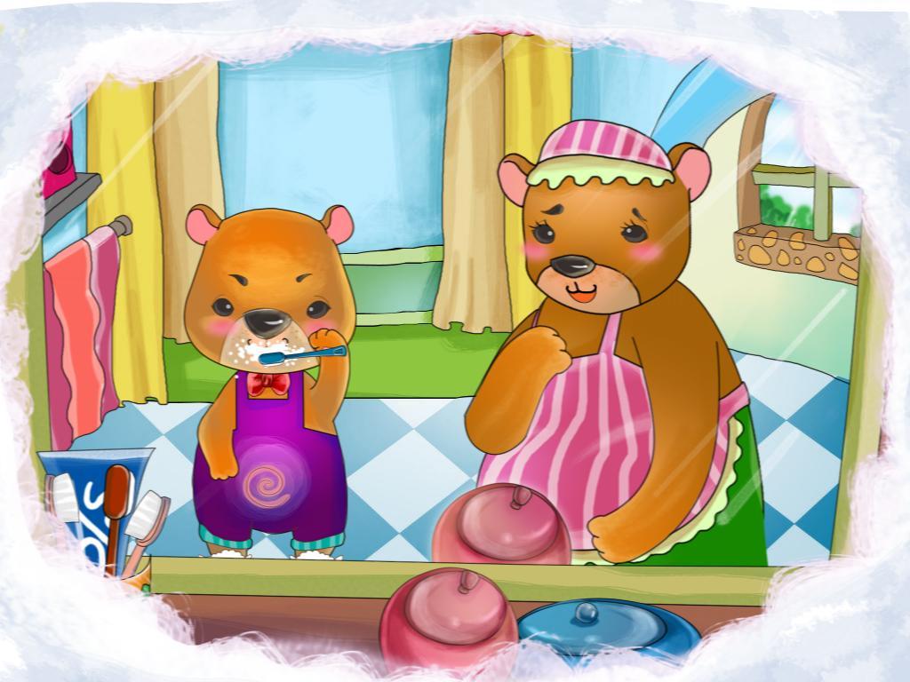 Nhớ lời bác sĩ dặn, ngày nào Gấu con cũng chăm chỉ đánh răng. Chú đánh răng rất cẩn thận, đánh mặt trước, mặt sau của răng theo đúng lời dặn của bác sĩ làm cho răng trắng bóng. Gấu con không ăn nhiều bánh kẹo mà ăn nhiều các chất bổ khác như thịt, cá, trứng, sữa, rau quả tươi, nên răng của chú trở nên chắc và khỏe hơn. Còn những chú Sâu Răng chúng tôi thì từ đấy không còn gì để ăn nữa nên phải chạy ra khỏi miệng Gấu con