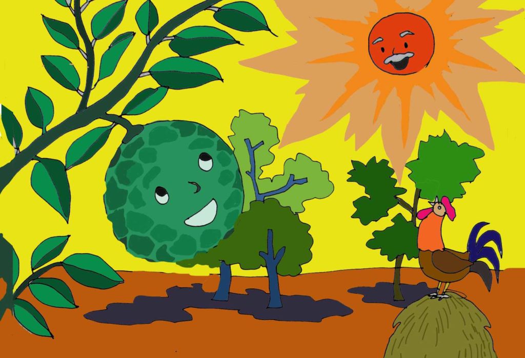 - Bạn Hoa Giấy đừng buồn! Hai chúng ta mỗi người một nhiệm vụ. Tôi dâng trái ngon cho mọi người, còn bạn thì cho sắc hoa và bóng mát.
