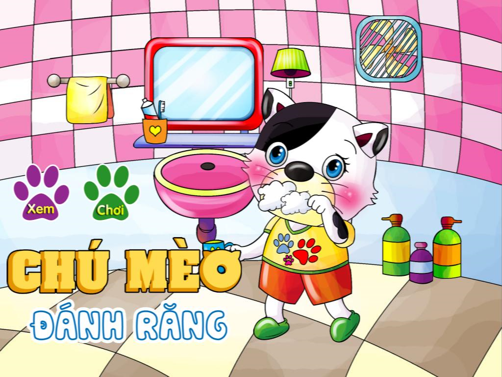 Bác Lợn mới mở cửa hàng bán bàn chải đánh răng, trước cửa có treo một biển quảng cáo rất to: “Bàn chải đánh răng chất lượng hạng nhất, một lần sạch ngay”. Nhìn kìa, chú Voi đã đến. Bác Lợn khiêng ra một bàn chải to nhất đưa cho chú Voi. Chú Voi cảm ơn bác Lợn và vui vẻ ra về. Mèo Con cũng muốn mua một bàn chải to, Bác Lợn nói: “Miệng cháu nhỏ, mua bàn chải nhỏ đánh răng mới sạch!”. Mèo Con vừa về đến nhà là đánh răng luôn, đánh mãi đến nỗi chảy cả máu răng. Chú sợ quá vội vàng đi tìm Bác Lợn: “Bác Lợn ơi bàn chải của bác không tốt”.Bác Lợn nói: “Đó là vì cách đánh răng của cháu không đúng”. Bác gọi Lợn Con ra và bảo: “Con hãy dạy Mèo Con đánh răng đi”. À, hóa ra là như thế này: Răng trên đánh từ trên xuống dưới , răng dưới lại phải đánh từ dưới lên trên, mặt răng hàm phải đánh đi, đánh lại, bên trong, bên ngoài, đều phải đánh. Mèo Con xem hết lần này, đến lần khác: “Tôi biết rồi”. Về đến nhà chú lại tiếp tục đánh răng…ấy làm sao mà đánh mãi không ra bọt trắng nhỉ? Mèo Con lại chạy đi tìm Bác Lợn: “Bàn chải của bác không tốt, đánh mãi không ra bọt”. Bác Lợn cười nói: “Vì cháu không dùng kem đánh răng”. “Đúng rồi, cháu quên mất!” Mèo Con lè lưỡi ra ngượng ngùng, rồi chú mua luôn một tuýp thuốc đánh răng. Mèo Con dung kem đánh răng nhưng không thấy bọt đâu cả. “Ha! Ha! Đồ ngốc!” Chú Voi dùng vòi của mình phun nước vào mồm Mèo Con. “A, có bọt rồi, bọt càng ngày càng nhiều”. Mèo Con càng đánh càng thích. Từ đó, mỗi khi bác Gà Trống gáy ò, ó, o thì Mèo Con lập tức dậy đánh răng. Nhưng một vài ngày sau, Mèo Con đột nhiên bị đau răng, mắt cũng sưng vù lên. Chú tức giận chạy đến tìm Bác Lợn: “Bàn chải của bác chẳng tốt tẹo nào”. Bác Lợn thấy răng của Mèo Con bị sâu răng rồi, tại sao thế nhỉ? Bác Lợn gãi gãi đầu: “Bác biết rồi, buổi tối cháu thường bắt chuột phải không?” “Vâng ạ” Mèo Con gật đầu. “Cháu ăn chuột xong có đánh răng không?” Bác Lợn lại hỏi “Không ạ!”. Ấy, ăn gì trước khi đi ngủ cũng phải đánh răng, nếu không răng sẽ sâu” “Hóa ra là chuyện đó”. Sauk hi Mèo Con chữa răng xong, buổi tối sau khi ăn chuột, chú đều đánh răng sạch sẽ rồi mới đi ngủ. Từ đó về sau, răng của Mèo Con lúc nào cũng tốt.