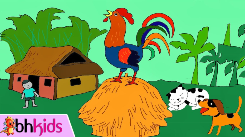 - Một con dữ tợn, đi đi lại lại trên sân thế này này: chân nó đen thui, mào nó đỏ ối, cặp mắt nó lồi ra, còn cái mũi nó khoằm khoằm. Khi con đi ngang qua, nó há hốc cái mồm ra, nhấc một chân và lên tiếng quát to đến nỗi con sợ quá chẳng còn biết chạy đi đâu.