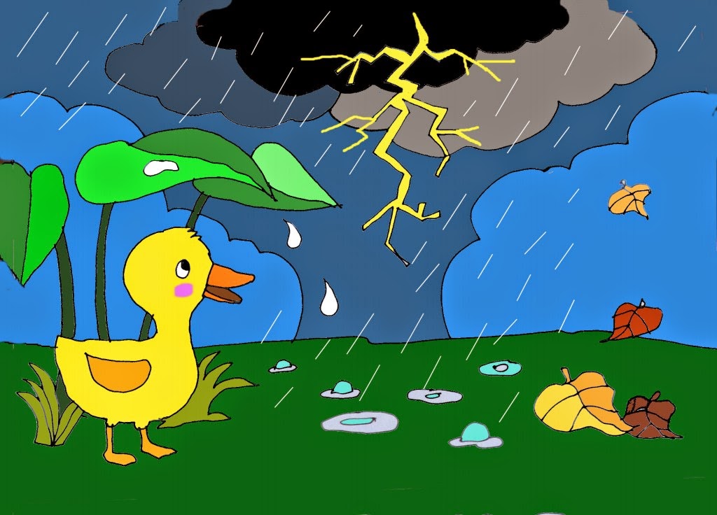 Ông Mặt Trời cười càng lúc càng tươi, ánh nắng ngày càng gay gắt hơn. À! Thì ra ánh nắng của ông Mặt Trời chiếu xuống mặt sông làm những hạt nước biến thành hơi. “Nhưng hơi nước bốc lên trời để làm gì nhỉ?” – Vịt con vừa đi về vừa nghĩ.