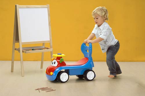 Bé có nhiệm vụ vừa bò vừa đẩy xe. Mẹ có thể đặt một chiếc ghế đặt giữa sàn nhà làm bến xe. Bé sẽ đẩy xe từ "nhà bé" đến bến và quay lại. Khi bé bò, mẹ chú ý nhắc bé giữ cột sống thẳng, bò bằng đầu gối và lưng không được võng quá kẻo sẽ làm bé đau, nhanh chán trò chơi. Mẹ cũng nhớ khen ngợi các bé khi bé chơi giỏi, đúng hướng dẫn.