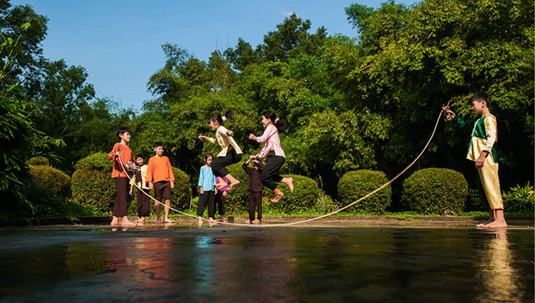 Ngoà !important;i ra, có thể chơi nhảy cặp đôi. Hai người chơi quay mặt vào nhau, một người cầm dây như cách chơi có 1 người và quay dây sao cho dây qua đầu và chân cả hai người.